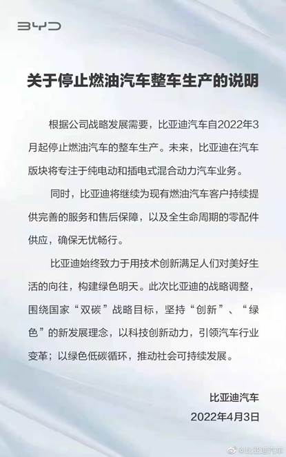比亞迪汽車正式宣布停止燃油汽車的整車生產 ... [更多詳細]