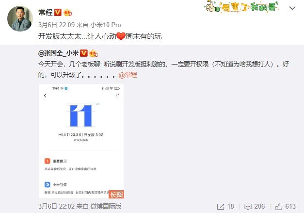 小米推送全新開發版MIUI11系統升級固件 ... [更多詳細]