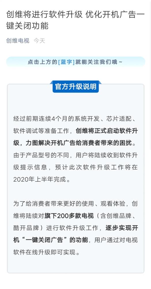 創維電視將進行軟件升級 優化開機廣告一鍵關閉功能 ... [更多詳細]