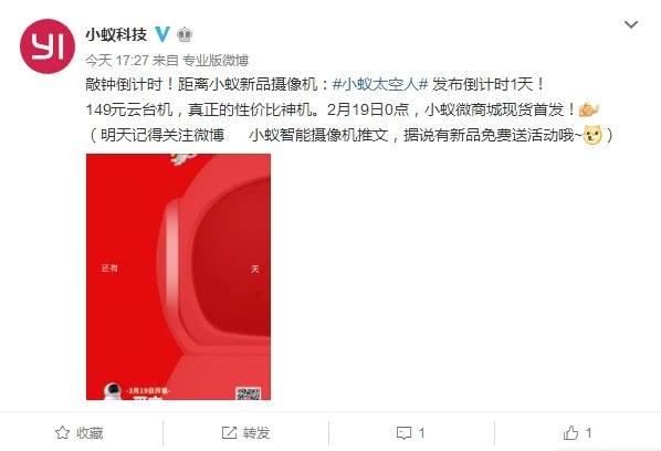 小蟻攝像機H20GB開賣 首發價149元 ... [更多詳細]