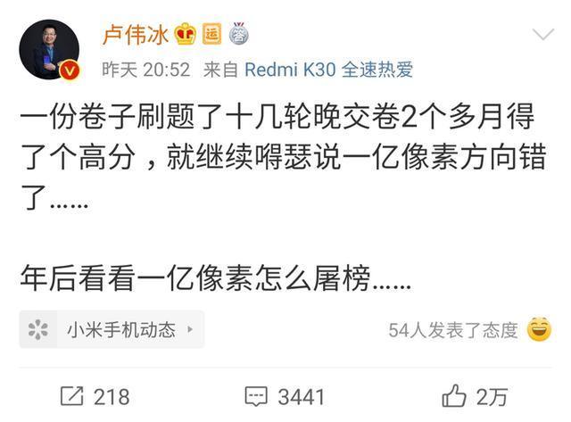1億像素加持!盧偉冰暗示小米10將屠榜DxOMark ... [更多詳細]
