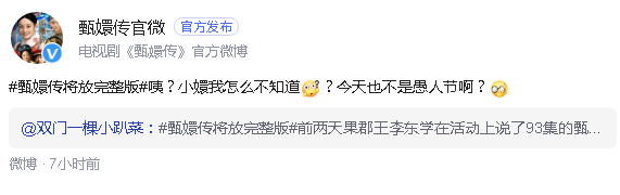 甄嬛傳官方辟謠將放完整版:今天也不是愚人節(jié)啊? ... [更多詳細(xì)]