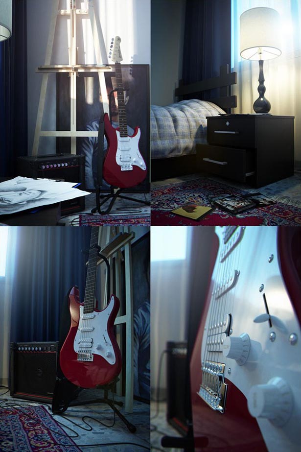 3DSMAX打造有吉他的臥室一角教程 ... [更多詳細]