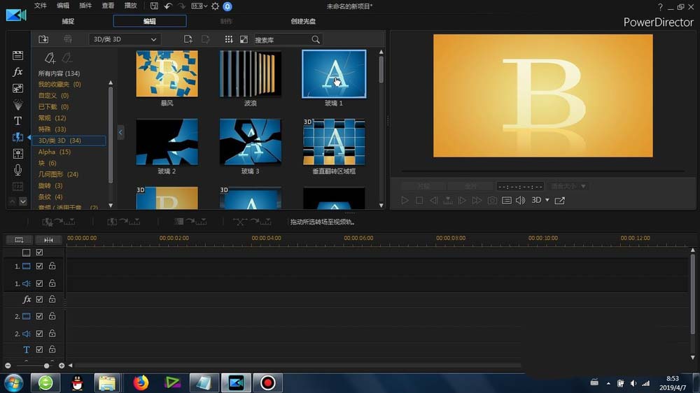 威力導演怎么給素材添加拼接轉場特效? ... [更多詳細]