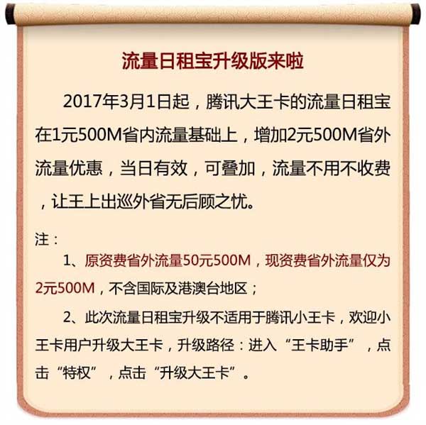 騰訊大王卡的流量日租寶升級:增加省外流量 ... [更多詳細]