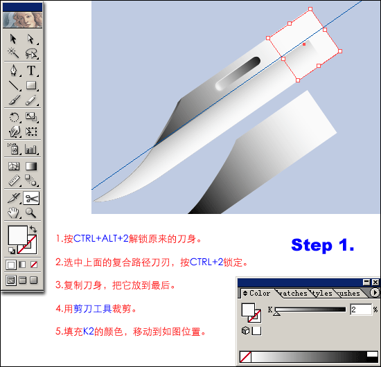 Illustrator 10 實例之:刀(1) ... [更多詳細]
