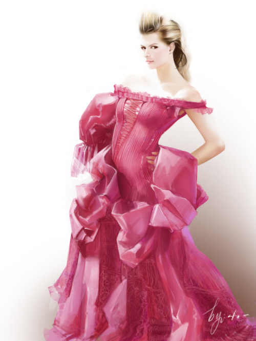 Painter結合友基數位板手繪插畫:紅衣美女模特(1) ... [更多詳細]