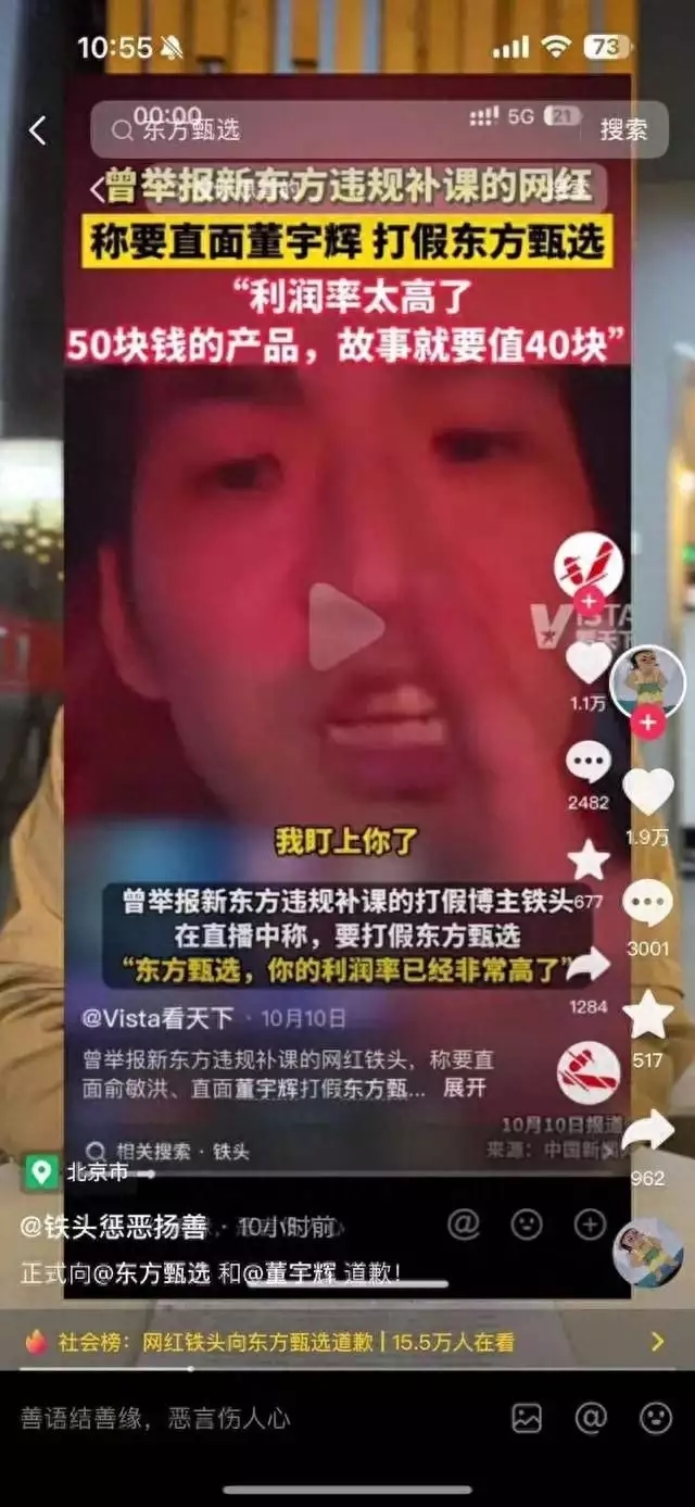 打假網紅“鐵頭”發視頻,向東方甄選和董宇輝道歉 ... [更多詳細]