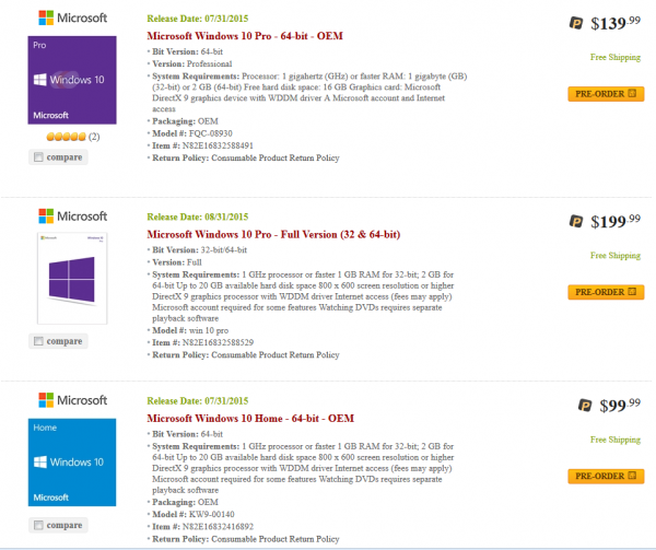 Windows 10正式版在美國新蛋提前開賣 ... [更多詳細]