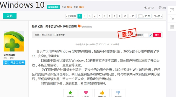 360暫緩Win10升級通知 ... [更多詳細]