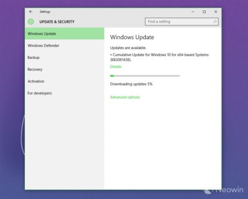 微軟為Win10推送了第三款累積更新KN3081438 ... [更多詳細]