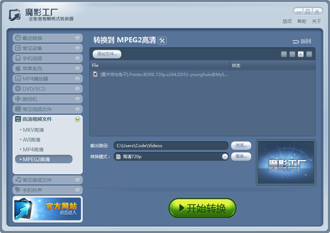 魔影工廠轉換高清MPEG2格式讓視頻更清晰 ... [更多詳細]