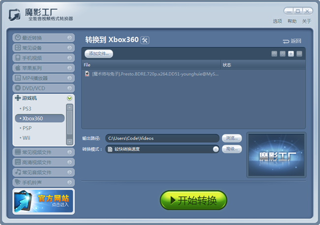 視頻格式轉換器魔影工廠轉換XBox360游戲主機格式 ... [更多詳細]
