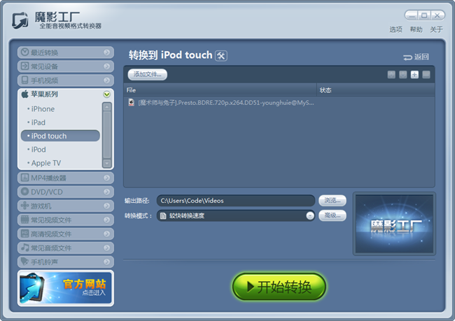 魔影工廠轉換蘋果系列中iPod touch專用格式的方法 ... [更多詳細]