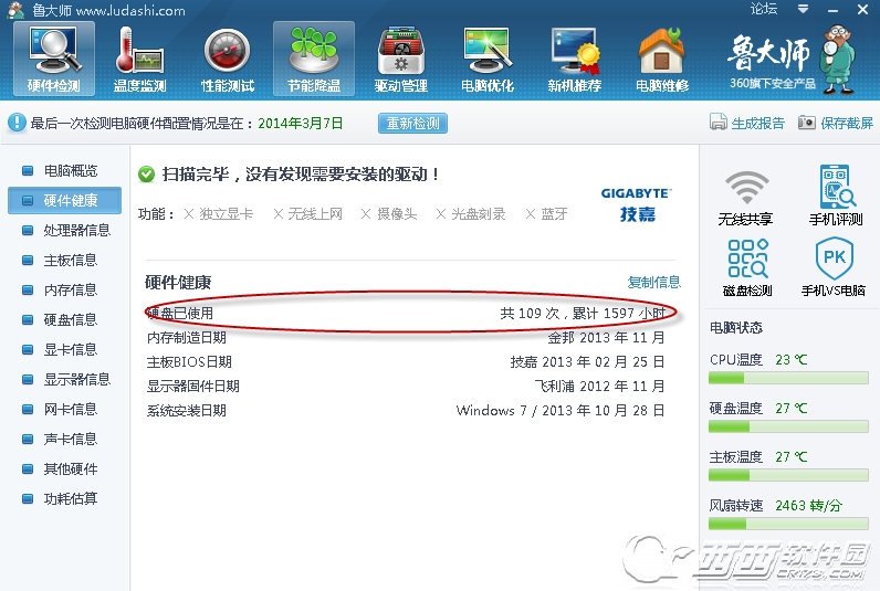 如何使用魯大師查看硬盤使用的時間 ... [更多詳細]