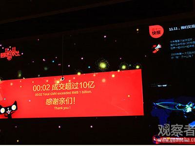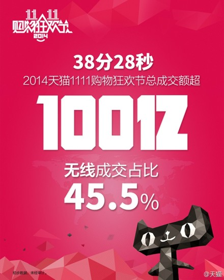 天貓開場38分鐘28秒 交易額突破100億元 ... [更多詳細]