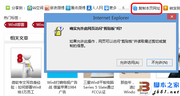 IE及IE內核的瀏覽器剪貼板操作時警告提醒的去除方法介紹 ... [更多詳細]