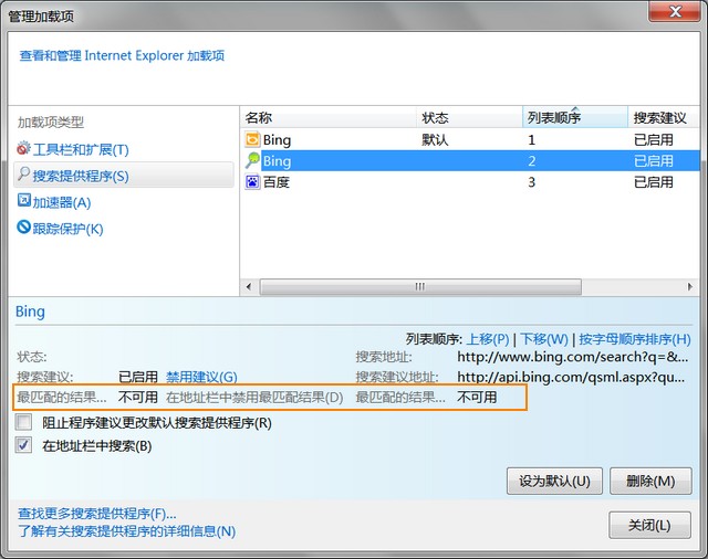 在IE9地址欄中啟用BING搜索的最匹配結果 ... [更多詳細]