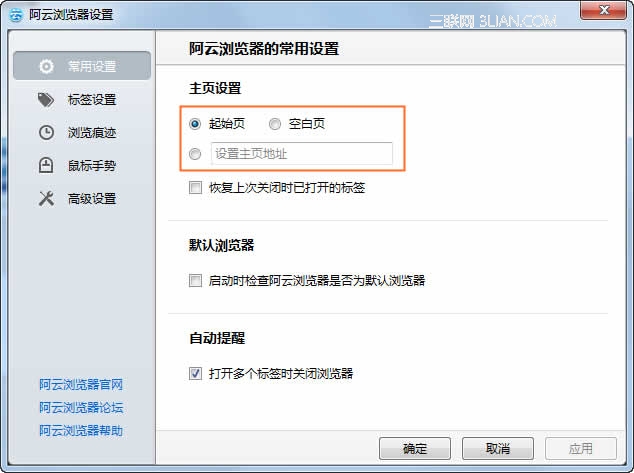 阿云瀏覽器如何設置我的主頁 ... [更多詳細]
