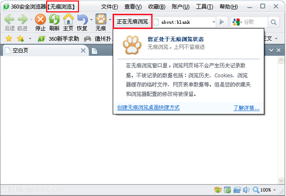 360安全瀏覽器無痕瀏覽的標示 ... [更多詳細]