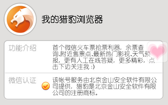 獵豹瀏覽器微信公眾號怎么搶票 ... [更多詳細]