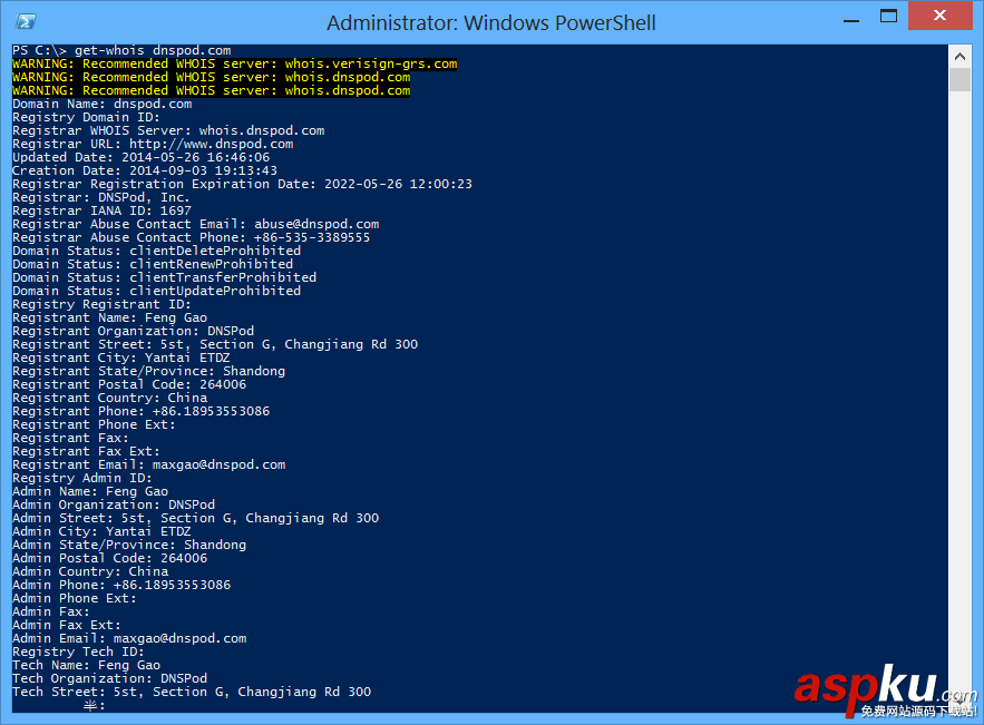 PowerShell小技巧之獲取域名whois信息 ... [更多詳細]