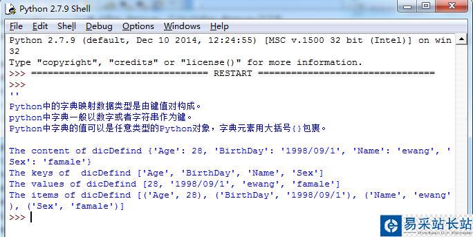 Python簡單定義與使用字典dict的方法示例 ... [更多詳細]