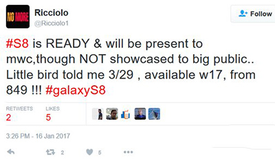三星S8或3月29日發布:首發屏下指紋識別技術,售價5844元起 ... [更多詳細]