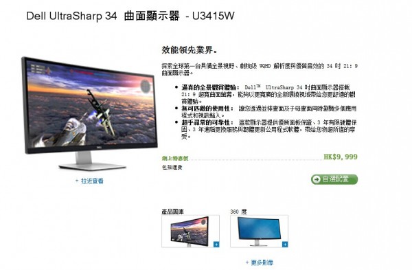 戴爾曲面顯示器公開:34英寸21:9 ... [更多詳細]