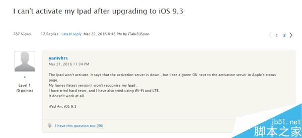 iPad 2升到最新iOS 9.3更新后(13E236):依然無法激活 ... [更多詳細]