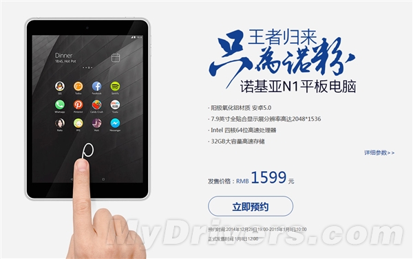 諾基亞平板電腦N1發布,僅售1599元,1月8日12:00線上搶購 ... [更多詳細]
