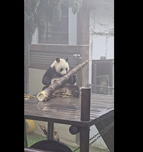大熊貓吃筍整出了扛炮筒的架勢(shì) 熊