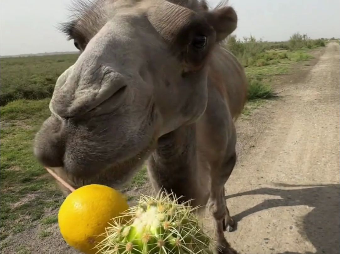 駱駝吃檸檬被酸出表情包 網(wǎng)友:帶刺
