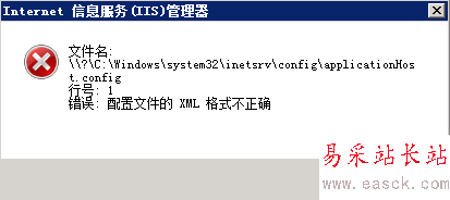 IIS配置文件的XML格式不正確 applicationHost.config被破壞 恢復解決辦 ... [更多詳細]