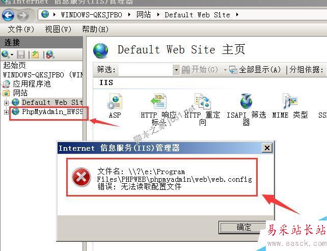 iis 7.5 選中站點提示 錯誤: 無法讀取配置文件的解決方法 ... [更多詳細]