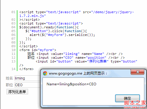 jQuery ajax中使用serialize()方法提交表單數據示例 ... [更多詳細]