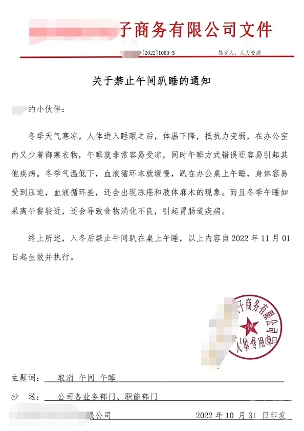 一份名為“關于禁止午間趴睡的通知”引發熱議 為何禁止員工趴睡? ... [更多詳細]