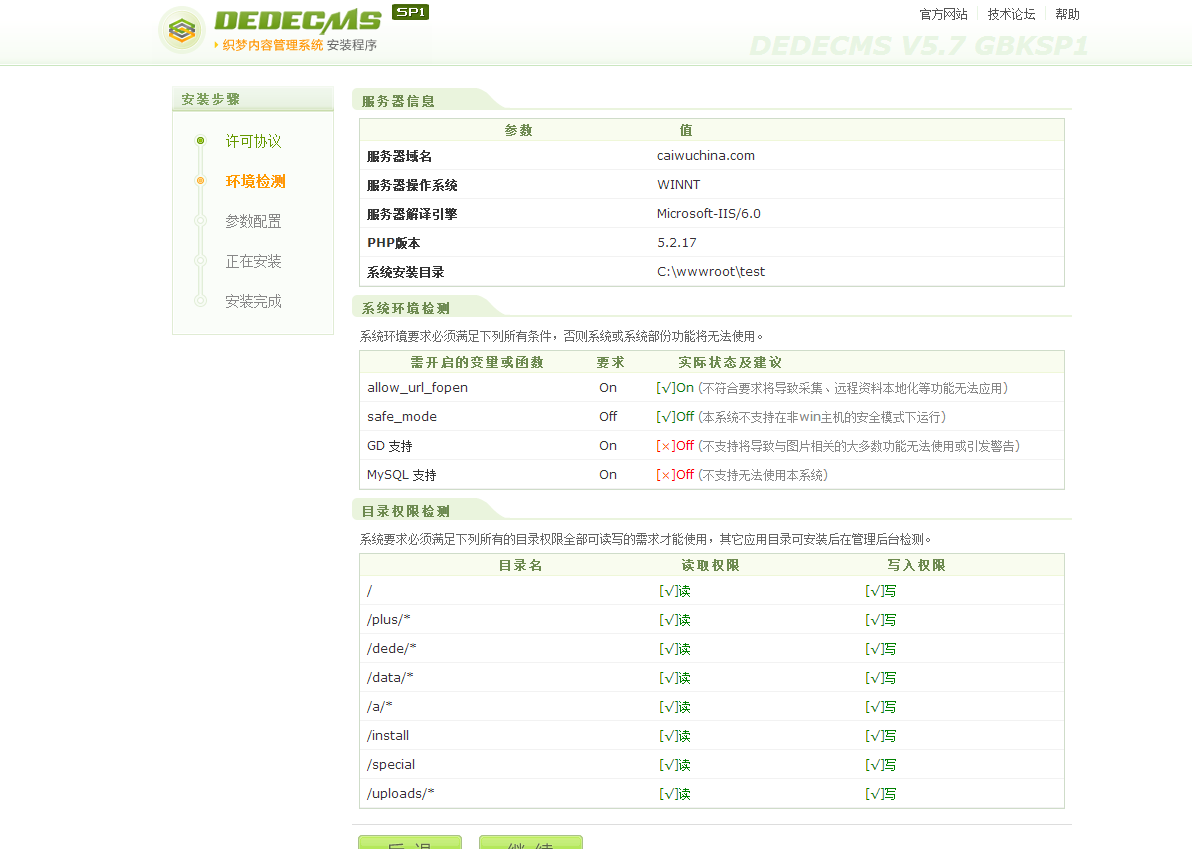 Windows 2003 系統安裝織夢DedeCMS提示不支持GD和Mysql ... [更多詳細]