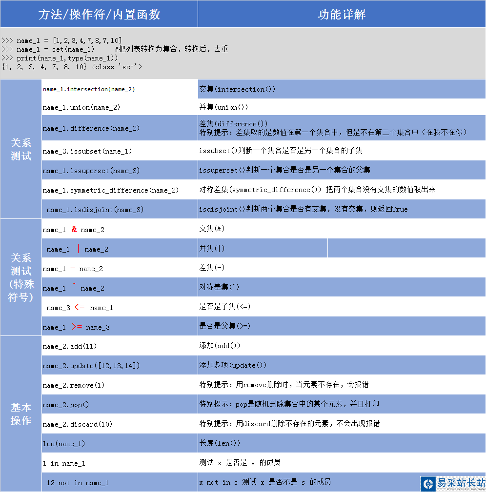 Python集合操作方法詳解 ... [更多詳細]