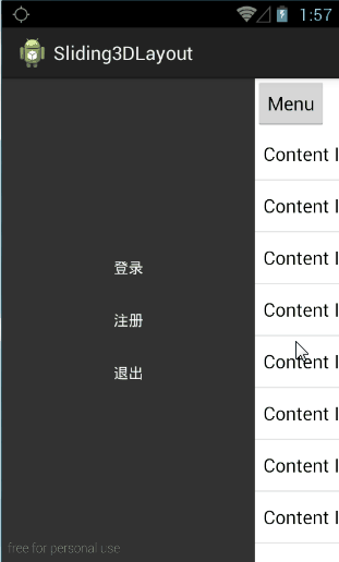 Android實現3D推拉門式滑動菜單源碼解析 ... [更多詳細]