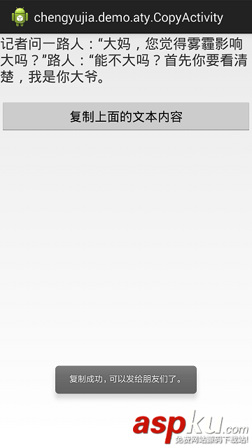Android 復制文本內容到系統剪貼板的最簡單實例(分享) ... [更多詳細]