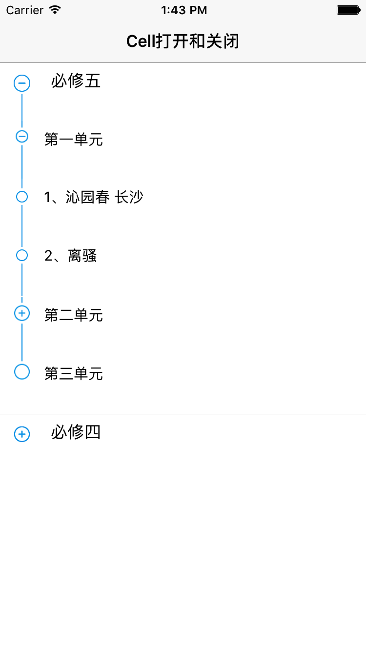 iOS中的二級菜單及Cell的展開收起示例 ... [更多詳細]