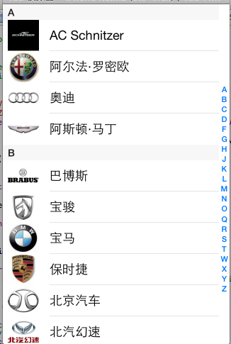 UITableView 實現汽車品牌(demo) ... [更多詳細]