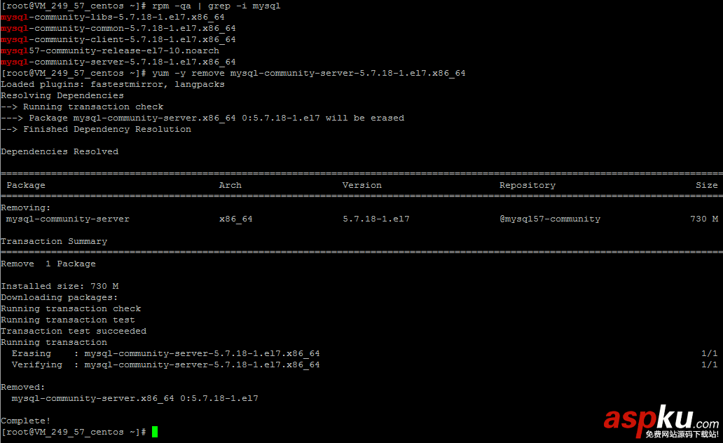 Linux下MySQL5.7.18 yum方式從卸載到安裝過程圖解 ... [更多詳細]