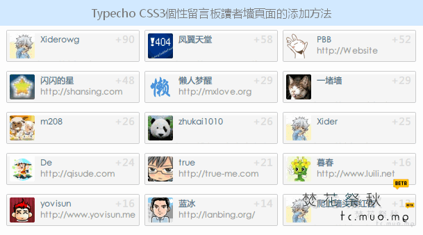 Typecho CSS3個(gè)性留言板之讀者墻頁(yè)面的實(shí)現(xiàn)方法 ... [更多詳細(xì)]
