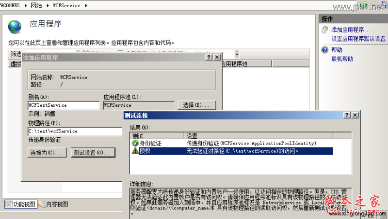II7添加應用程序測試時 無法驗證對路徑(c:/test/WcfService)的訪 ... [更多詳細]