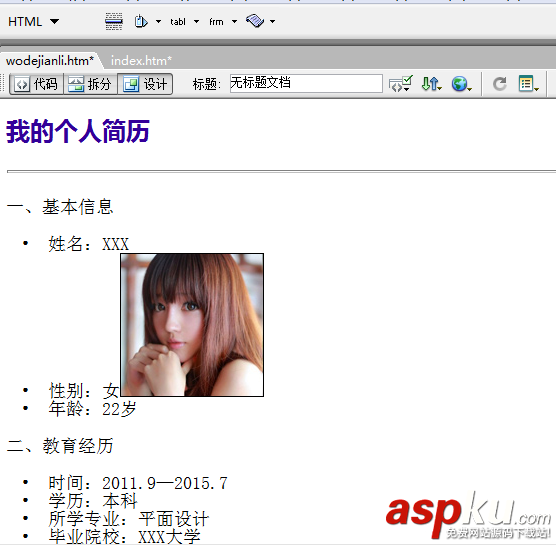 Dreamweaver怎么給個人簡歷添加照片并排版? ... [更多詳細]