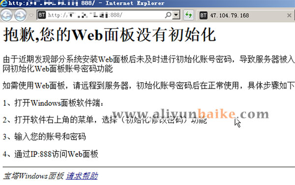 BT寶塔提示“抱歉,您的Web面板沒有初始化”怎么解決 ... [更多詳細]
