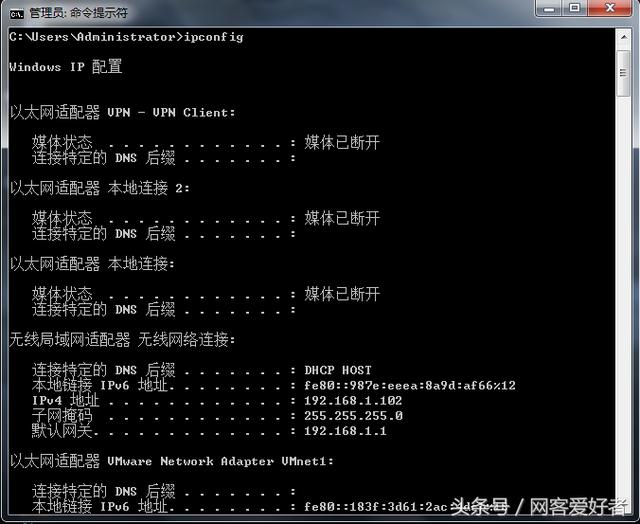查看你本機的IP信息的命令ipconfig詳解 ... [更多詳細]