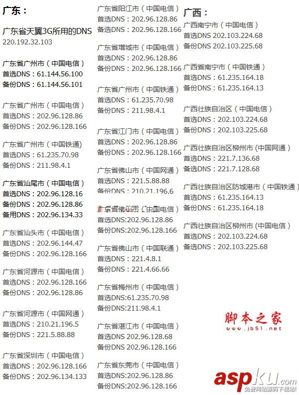 全國各省、市DNS服務器IP地址大全 (電信、網通、鐵通) 圖文 ... [更多詳細]